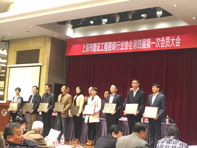 协会领导为上海市建设工程咨询行业先进企业颁奖,共9家企业被评为“2015年度上海市建设工程咨询行业项目管理先进企业”,公司位列其中。同时,南宁火车东站片区基础设施项目群被评为“2015年度上海市建设工程咨询行业项目管理优秀项目”,副总经理罗晟博士、谢坚勋博士均被评为“2015年度上海市建设工程咨询行业项目管理优秀项目经理”。此外,佘山北大型居住社区将军路新建工程被评为“2014-2015年度上海市优秀工程招标代理项目”,造价咨询事业部张军妹、田卫民分别荣获“2014-2015年度上海市建设工程咨询行业优秀造价工程师、造价员”。