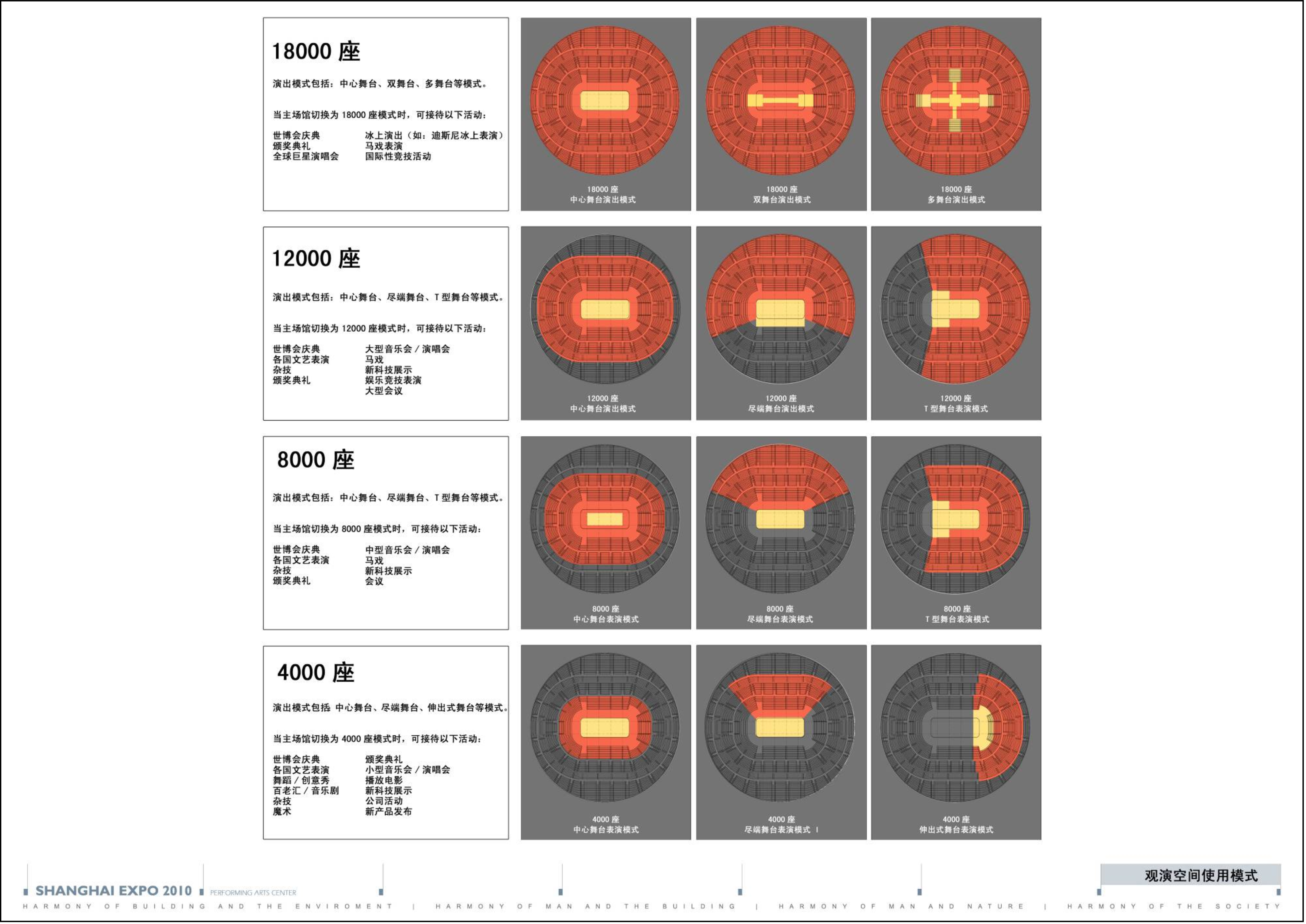 上海世博园区建设中,大量外国自建馆、租赁馆、联合馆和企业馆都是临时性建筑,而世博轴、演艺中心、中国馆、世博中心和主题馆(一轴四馆)为永久性建筑。演艺中心是一座拥有18000个座位的公共建筑,在2010年上海世博会期间承担了开、闭幕式和其他重要大型演出和活动。场馆所在位置紧临黄浦江,上海文广集团和上海精文投资有限公司作为投资方和开发方,项目总投资13.6亿元。投资方和开发方从最终运营出发,在2005年项目建设初期,就确定由上海东方明珠集团公司、美国AEG体育娱乐集团和NBA中国合资成立专业运营公司负责世博会结束后协议年限内的设施经营和管理权。该公司对世博会结束后设施的运营管理进行中长期规划,以国际化经营标准打造世界级一流文化演艺场馆。该公司作为设施运营管理单位,全程参与了项目建设过程,从运营管理角度承担项目建设期的专业顾问。项目建设过程充分遵循最终运营导向,观众席可从4000座逐步调整为18000座,舞台可配合演出在大小、形态甚至在360度空间进行三维组合就是一个最好的证明。2010年11月19日和20日王菲上海演唱会的举办,标志着演艺中心实现了从世博会场馆到梅赛德斯·奔驰文化中心的完美转身。