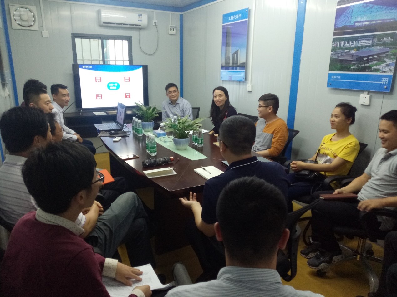 何清华教授和副总经理樊晔于下午三点到达了前海。一间小小的会议室,挤满了项目部的同事。会议开始,公建项目总经理助理付滨哲,代表项目部向公司领导就近期工作做了总结。听取项目汇报之后,总裁何清华教授对项目部做出的成就给予了极大的肯定,表示在人员紧张,项目环境复杂的情况下,项目团队仍能保持高昂的斗志,并取得业主的肯定,是全体项目同事的功劳,并表达了对所有同事的感谢。随后,副总经理樊晔也赞扬了项目部同事不畏艰苦,坚守岗位的精神,并对未来的工作提出新的要求和期待。