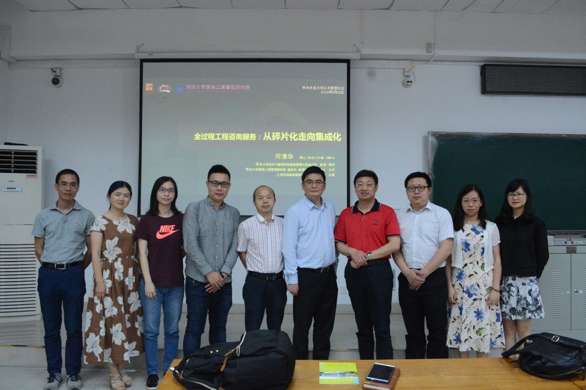 5月28日,公司总裁何清华教授做客华中农业大学“公共管理论坛”,以“全过程工程咨询服务:从碎片化走向集成化”为主题进行主旨演讲。