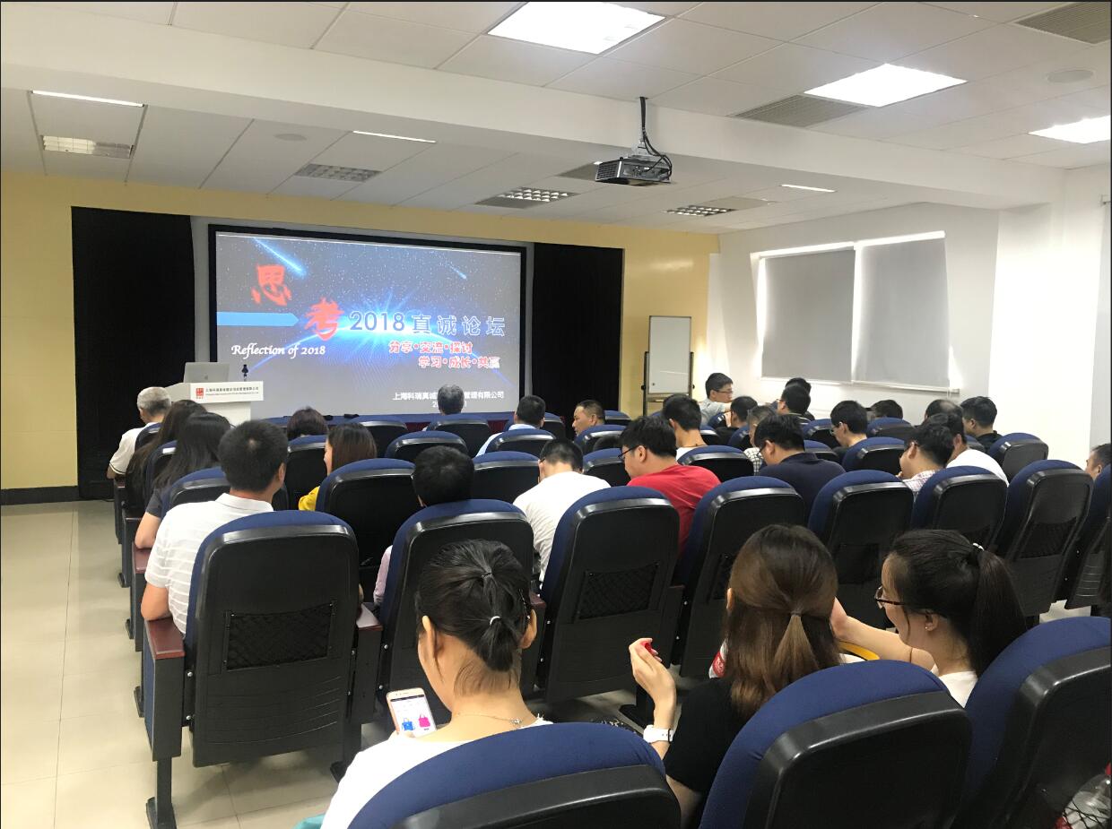 9月1日是公司周年庆的日子。下午一点半,公司在位于松江区西林北路的学习中心,举办了以“思考2018”为主题的第七届真诚论坛活动。论坛由副总裁王华主持,副总经理秦光等八人登台演讲。名誉董事长封履宁、监事长郁钢等公司领导和近百位员工参加了本次论坛。
