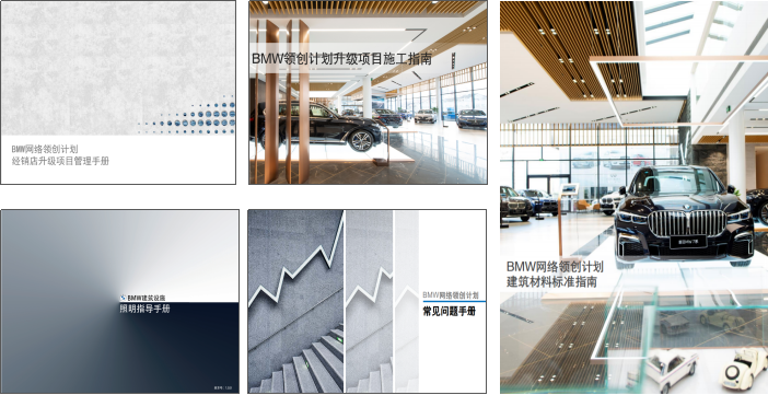 不仅如此,品牌设施事业部凭借丰富的汽车设施项目群管理的经验和专业的设计团队,为宝马领创升级项目提供了增值服务,编制了《项目管理手册》、《照明指导手册》、《项目施工指南》、《项目常见问题手册》、《项目建筑材料标准指南》等项目标准指导文件,建章立制,为宝马领创升级计划的标准化设计与项目管理夯实了基础。