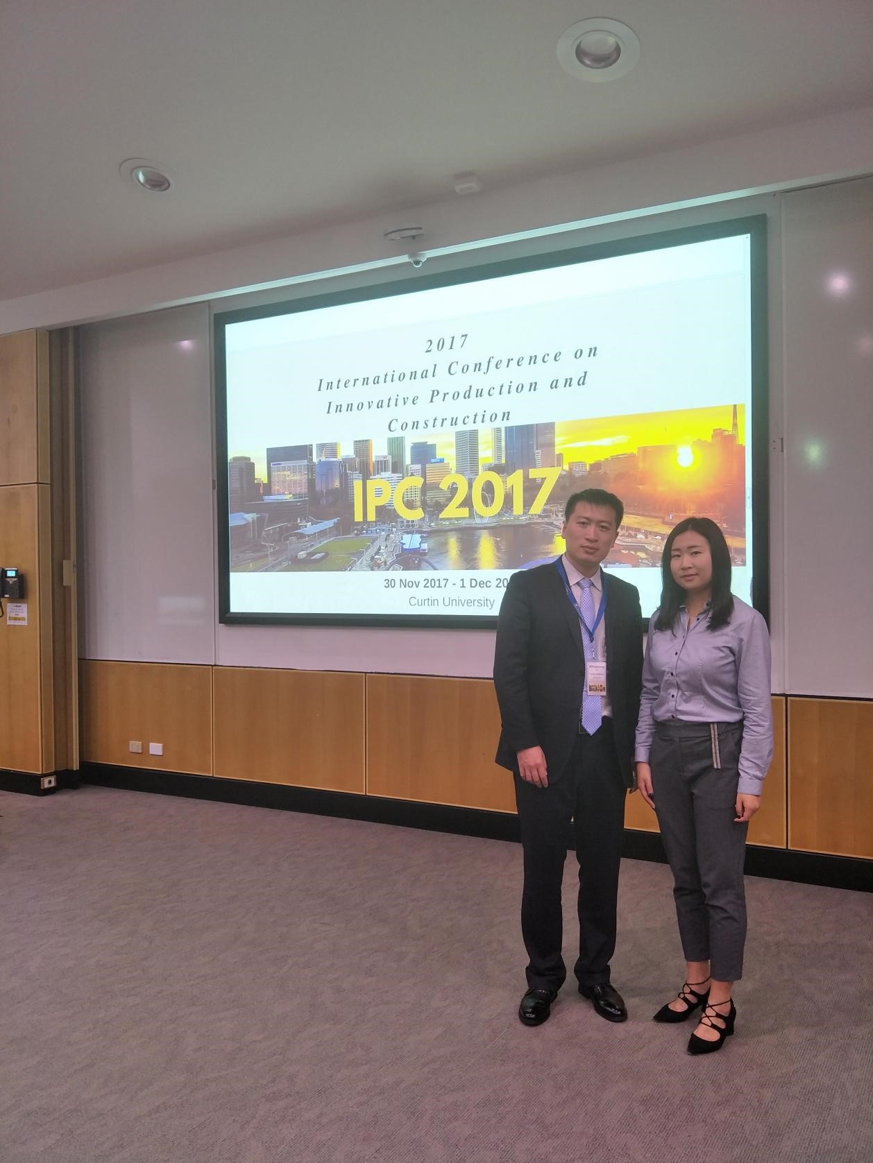 受澳大利亚科廷大学邀请,国家自然科学基金重大项目课题组于2017年11月30日到12月1日赴澳参加2017年IPC(International Conference on Innovative Production and Construction)会议,研究院作为子课题三负责单位参加了会议,研究院博士生刘明强和王婷参加会议,博士生刘明强做会议主题报告,与与会人员分享了课题的部分研究成果,并与参会的新加坡国立大学的著名教授学者进行了相关讨论,取得良好反响。