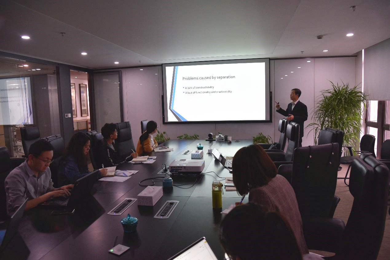 孟宪海博士首先结合自身清华大学、柏林工业大学、英国女王大学以及业界实践的经历,对其教学、科研和实践的现状进行简要说明,并围绕他目前所关注的大型复杂项目管理、供应链协同与集成、可持续人居、信息技术和设施管理等多个方面系统介绍其研究兴趣。