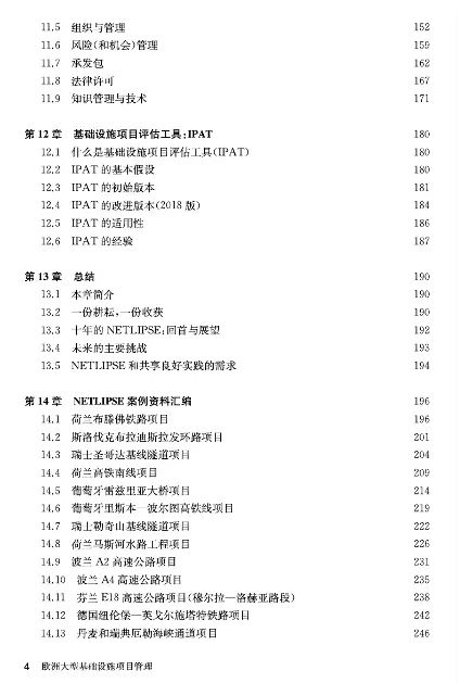 本译著分为上下两篇,上篇编译自NETLIPSE于2008年出版的《大型基础设施项目管理:欧洲大型基础设施项目的最佳实践与经验教训》,原书作者包括马塞尔·赫托 (Marcel Hertogh)、斯图尔特·贝克 (Stuart Baker)、宝莲·斯塔欧合菲尔 (Pau Lian Staal-Ong)以及埃迪·韦斯特维尔德 (Eddy Westerveld)。