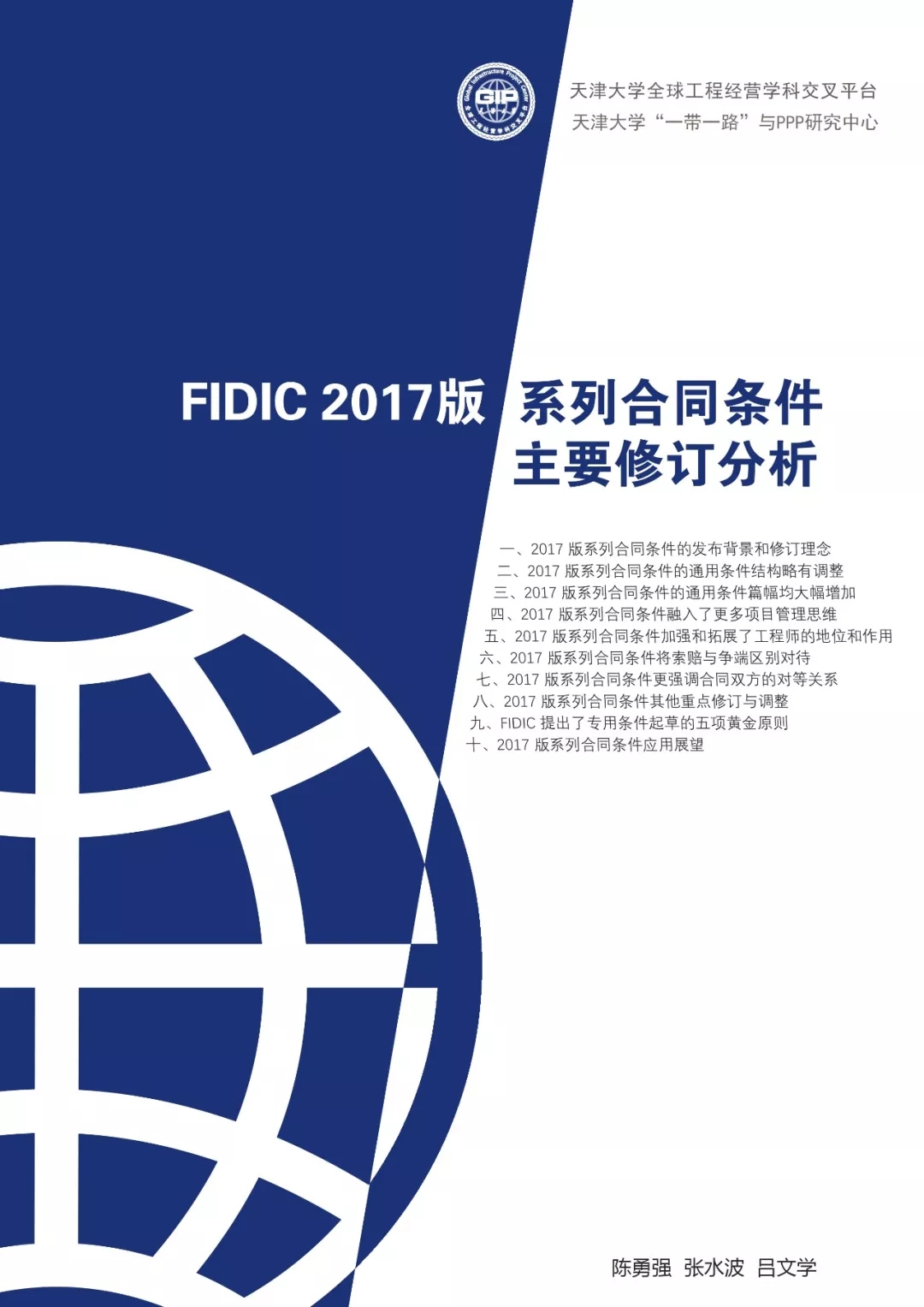 2017年12月,国际咨询工程师联合会(Fédération lnternationale deslngénieurs-Conseils, FIDIC)在伦敦举办的国际用户会议上,发布了99版三本合同条件的第二版,分别是:施工合同条件(Conditions of Contract for Construction)(红皮书)、生产设备和设计-建造合同条件(Conditions of Contract for Plant and Design-Build)(黄皮书)和设计-采购-施工与交钥匙项目合同条件(Conditions of Contract for EPC/Turnkey Projects)(银皮书)。
