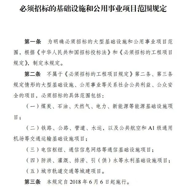 国家发改委发布《必须招标的基础设施和公用事业项目范围规定》